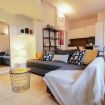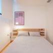 The apartment features a spacious and quiet double bedroom and a living area with a sofa bed. The modern decor, carefully designed down to the smallest detail, creates an elegant and welcoming atmosphere.