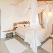 • A second double bedroom connected to a third bedroom with two single beds, also with a private bathroom.
